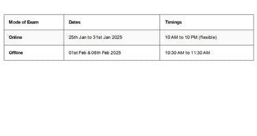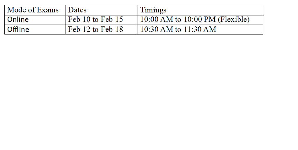 The EST exam is scheduled to take place both online and offline, with the following dates and timings: