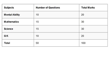 The EST 2026 exam consists of objective-type questions (multiple-choice questions). The exam pattern is designed to evaluate a student’s aptitude in Science, Mathematics, and Mental Ability, depending on the student’s class.